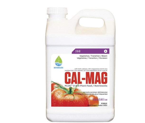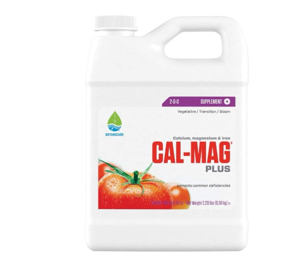 Formulated with calcium and magnesium, Cal-Mag Plus provides a precise balance and optimal ratios of the calcium, magnesium, and iron that are critical throughout all stages of growth, especially in heavily fruiting plants and fast blooming annuals. Cal-Mag Plus is fortified with a proprietary blend of select trace minerals to help maximize yields in fruiting and flowering plant varieties, prevent blossom end rot in tomatoes and peppers, and reduce tip burn in lettuce. When used in combination with nutrient solutions Cal-Mag Plus functions as a catalyst to increase the uptake of essential minerals. Botanicare Cal-Mag Plus helps prevent common deficiencies, enhances nutrient uptake, and supports robust plant development in every stage of growth.